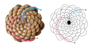 Στον ηλίανθο, οι σπόροι διατάσσονται σε αντίθετες σπειροειδείς κατευθύνσεις, με αριθμούς που σχεδόν πάντα ανήκουν στην ακολουθία Fibonacci. Στα κουκουνάρια, στα φύλλα της αλόης ή στις φτέρες που ξεδιπλώνονται, η σπείρα επιτρέπει ομοιόμορφη ανάπτυξη χωρίς συγκρούσεις, χωρίς επανασχεδιασμό της δομής.